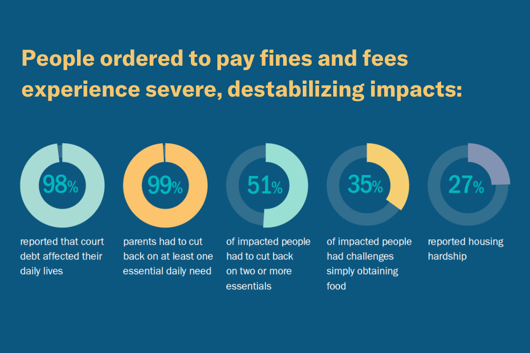When someone cannot immediately pay, further punitive measures are often taken, many aimed at raising more money, that not only make it increasingly difficult to pay off debt but jeopardize overall financial stability and have long-term negative impacts on their lives. Measures include levying additional fees, drivers license suspension, issuing warrants, arrest and even jail.