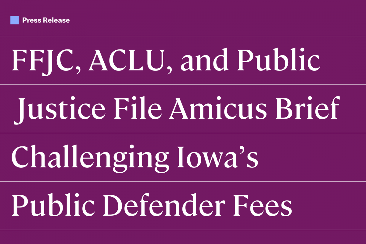 “Criminal fines and fees can haunt people long after their cases have ended,” said Public Justice’s Charles Moore. “And for someone who’s already struggling to make ends meet, this kind of debt can be the determining factor in whether a parent can feed their kids or whether a family ends up homeless. Given the terrible impact on Iowa communities of owing this debt, the idea that courts are charging indigent Iowans for their public defender fees even when all charges are dismissed is irrational. It’s also unconstitutional.”