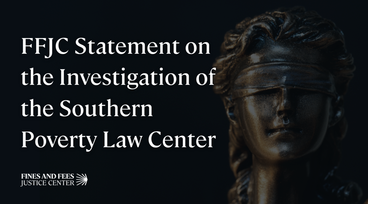 NEW YORK — This week, the Southern Poverty Law Center, a nonprofit legal advocacy group, announced that it is being criminally charged by the U.S. Department of Justice (DOJ). In response, Fines and Fees Justice Center’s (FFJC) Co-Executive Directors Joanna Weiss and Priya Sarathy Jones issued the following statement on behalf of FFJC: